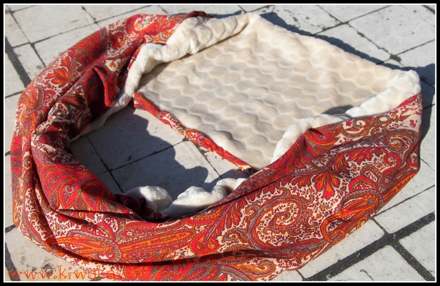 El snood está inspirado en el CC de La Vie en Diy, pero a mi bola, otras medidas y otro diseño. Son dos rectángulos de 126 x 27cm, (por si alguien quiere coserlo con estas medidas), que van bien para dar dos vueltas.
