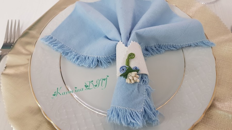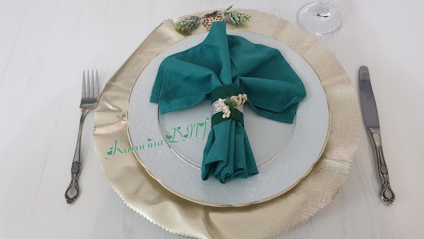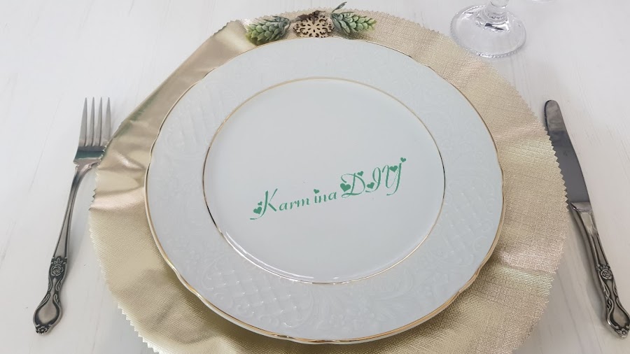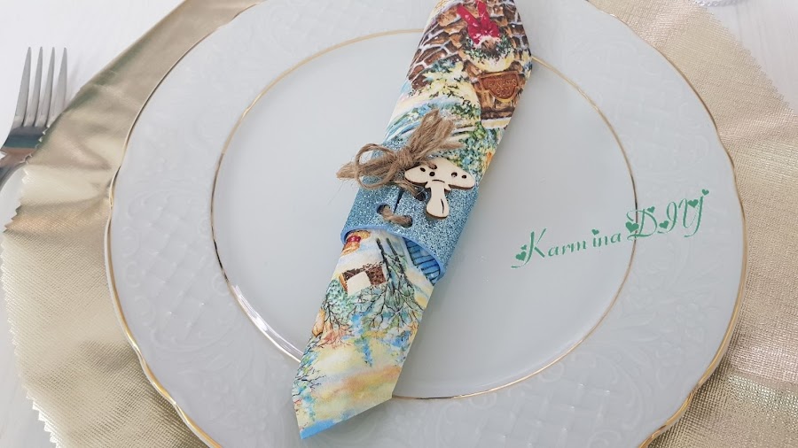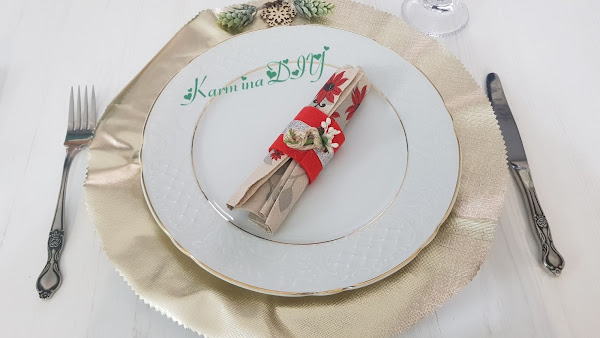 Esto si que te va a dejar sin palabras, porque no se tarda, nada de nada, yo utilizo un trozo de hule o mantel de plástico dorado y la decoración es lo que te apetezca. Unas ramitas, rafia, mini figura de madera, flores... y listo.