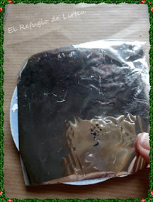 Se retira el papel y el relieve aparece con reflejos metálicos plateados y queda super navideño ¿ no os parece?