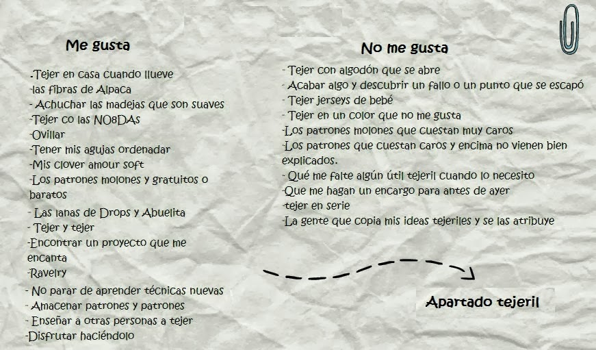 y deteniéndome un poco más en el mundo tejeril la lista de me gusta y no me gusta se puede extender un poco más en detalle.