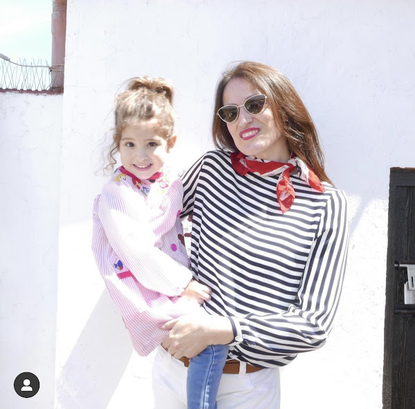 Aquí puedes vernos a las dos de handmade, Amalia con su batita de Colours for Baby y yo con una blusa de rayas que cosí a finales del 2017 y que también te enseñé en el blog.