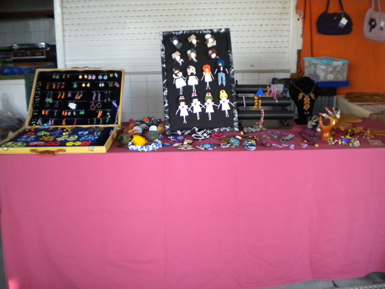 Aquí tenemos el expositor de Artesanías Fedra, de Cuntis. Tiene unos broches de muñecas de fieltro muy bonitos, pero a mi me lleva el alma una diadema de florcitas que me gustaría tener una nieta para ponersela, pero mis hijos todavía no me han dado ese gusto, que le voy a hacer...