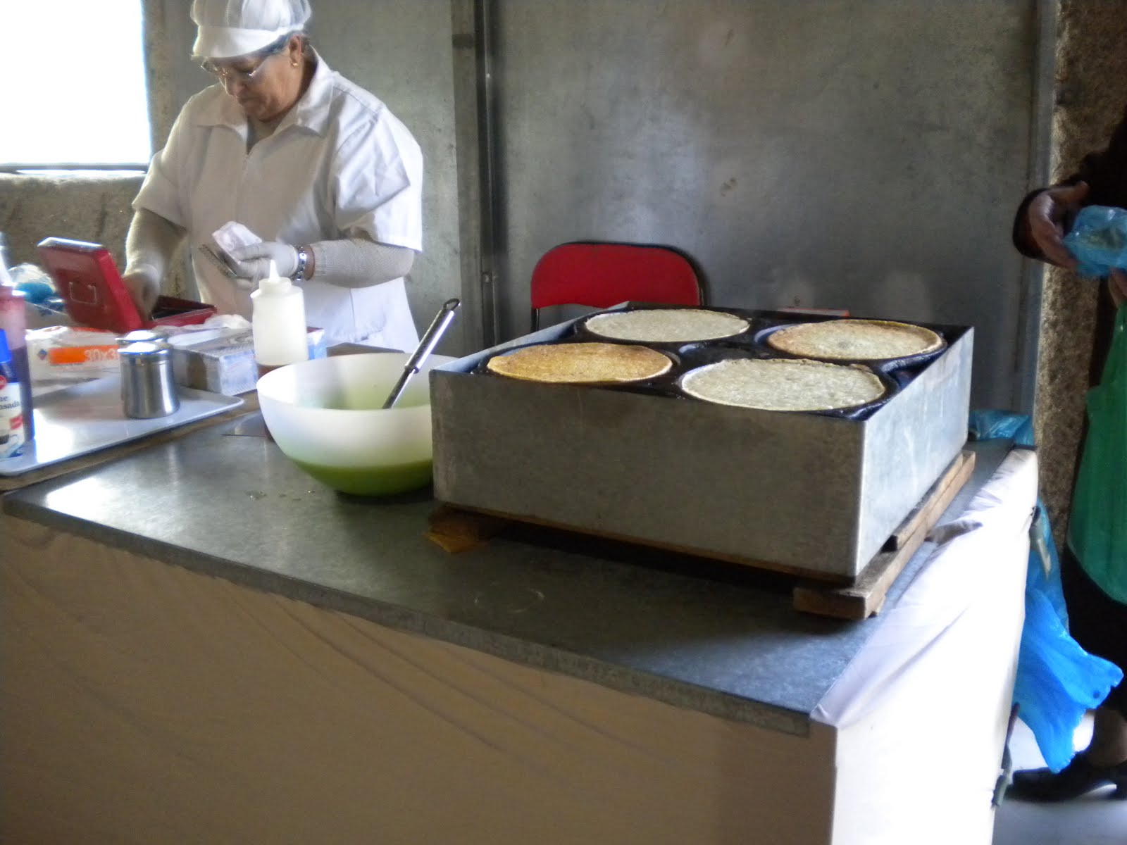 Ahhh!! La Señora Fina, de Cuntis, y sus filloas que no falten en ninguna fiesta. Para las que no lo sepais, aunque creo que en la foto se ve bien claro, filloas o filloces se llaman en Galicia a unos dulces muy parecidos a los crépes, sólo que aquí hay quien las hace sin leche, con lo que resultan màs crujientes, y, cuando se hacía la mantanza del cerdo, también se hacían con sangre. Es una tradición muy antigua que todavía se conserva en las casas rurales. Ese aparato sobre el que se hace le llaman piedra, porque antes eran realmente piedras calientes las que se utilizaban. Una de mis primas es una maestra haciendo filloces, y cuando las hace pasa toooooda la tarde haciendolas para toda la familia (y me refiero a una familia muuuy larga). Vamos, que solas, con azucar, o con lo que sea, frías o mejor calientes, están buenísimas.
