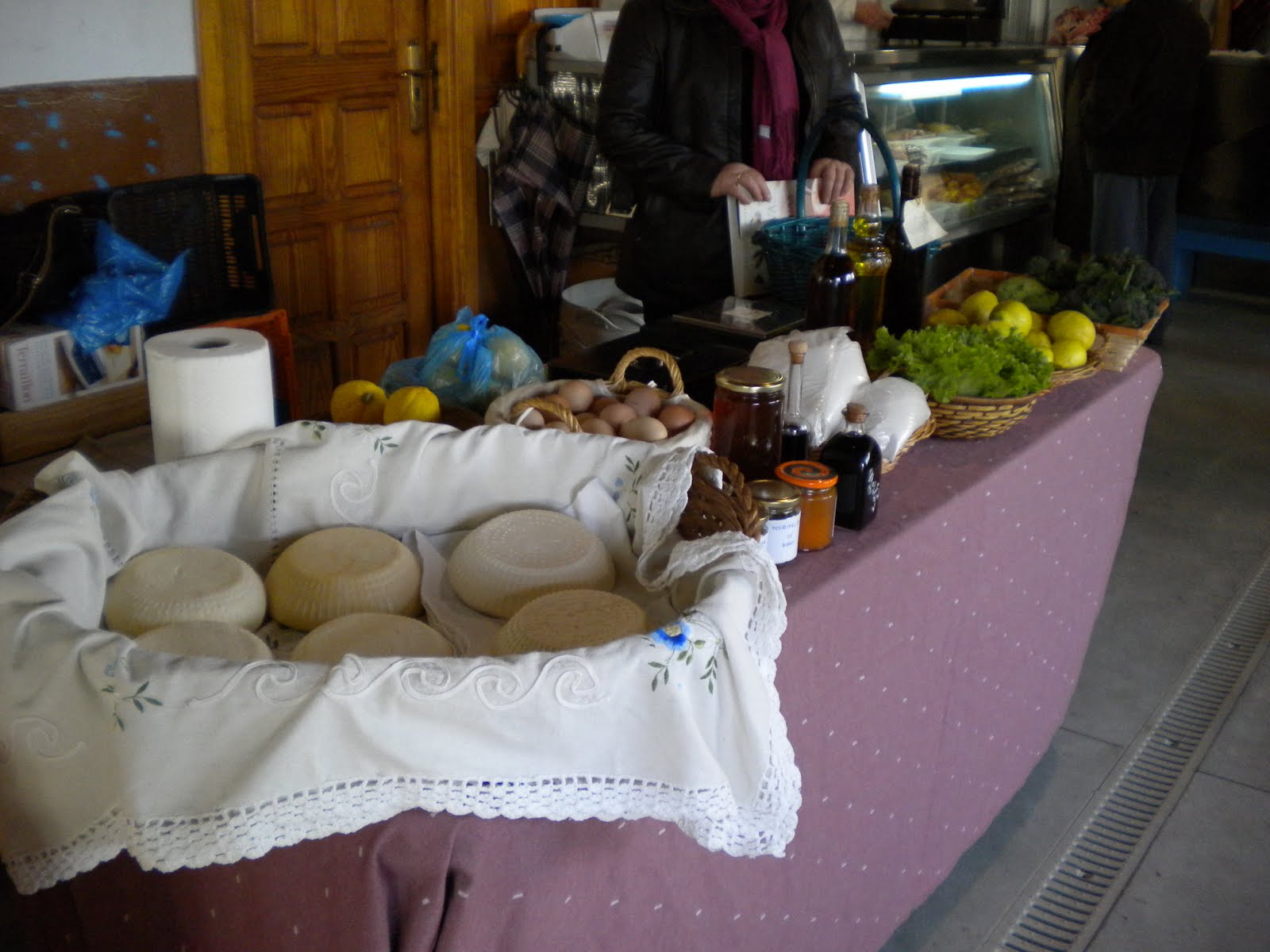 Aquí tenemos uno de los quesos típicos de mi tierra, la famosa tetilla, que junto a otros productos de la huerta nos traen Marisol y Mª Carmen, de Cuntis. Como veis tienen un surtidillo.