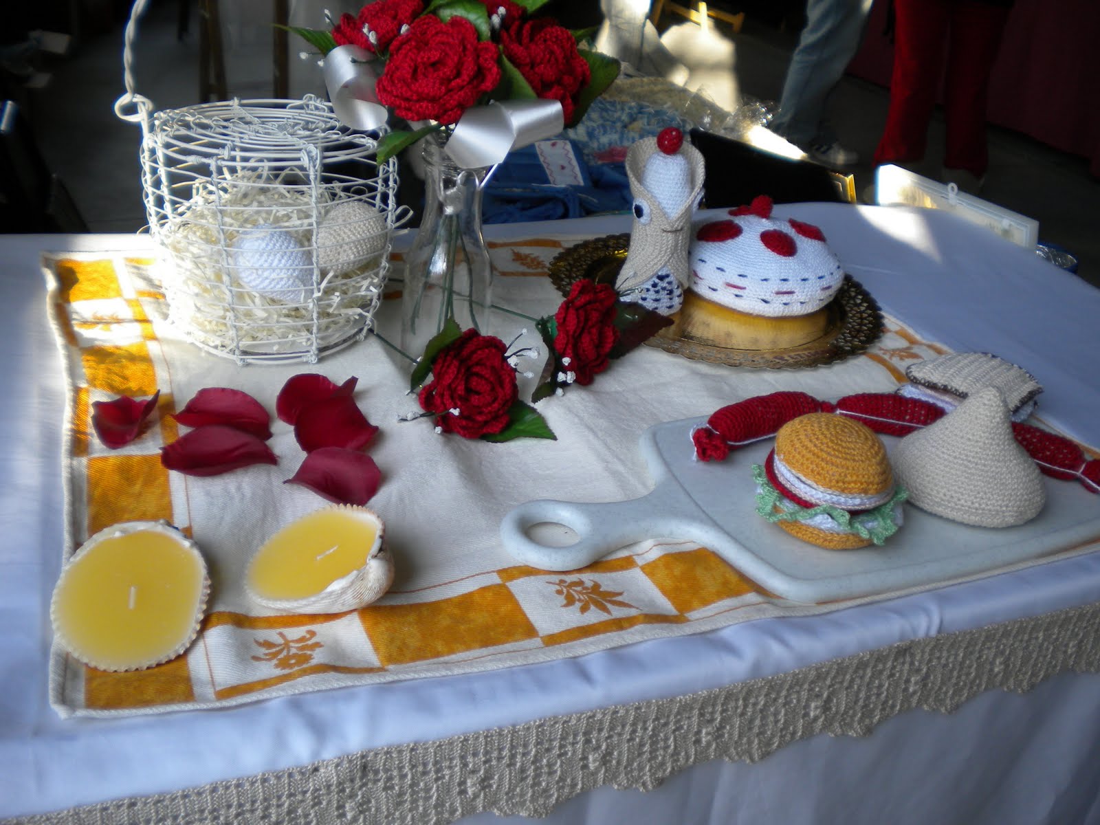 Artesania Mae, de La Estrada. Me encanta el detalle de la hamburguesa por simpático, pero las rosas de ganchillo son lo más.
