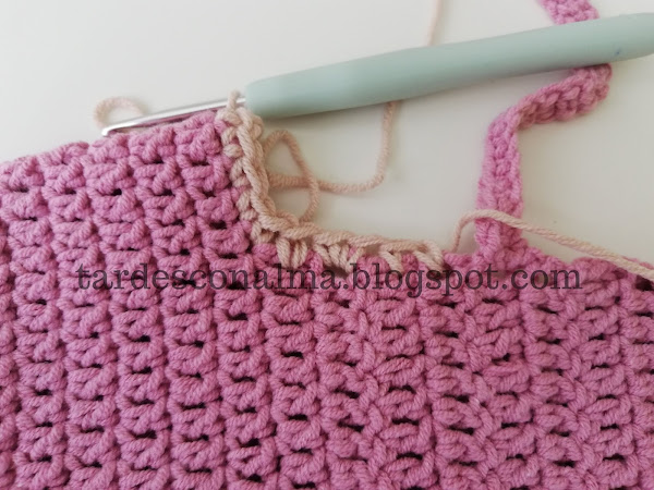 12ª vuelta: 3 cad que servirán como el primer pma y trabajar los 19 puntos restantes (1pma en cada pma hasta un total de 20 pma) Dejamos al final sin hacer 10 puntos.