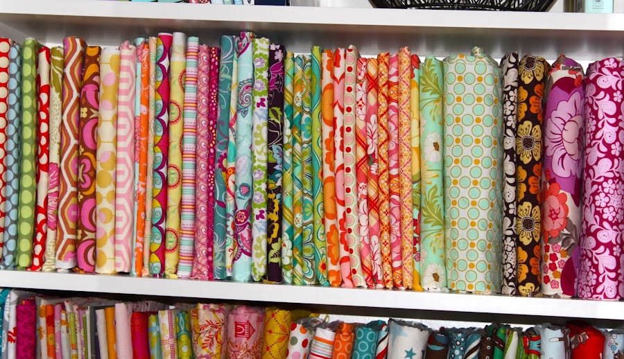 Telas de patchwork de distintos estampados y colorido, tamaños diferentes unidos entre sí.