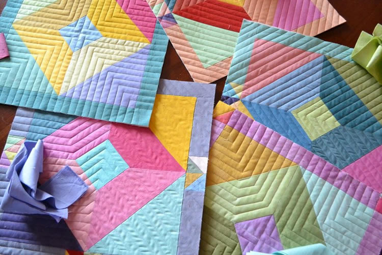 Cuadros hechos con distintos tipos de tela patchwork para realizar mantas, manteles.