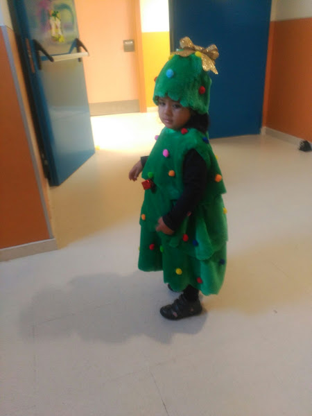 el año pasado tuvimos dos encargos muy especiales, un belén en tela, un traje de árbol de navidad.