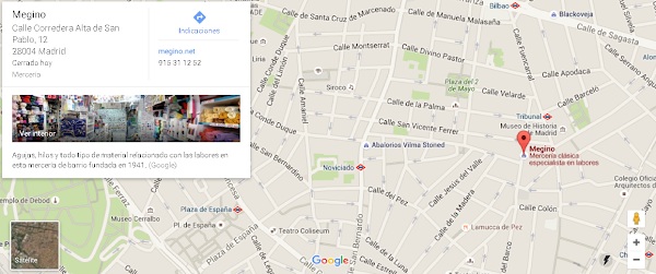 Mercerías Megino: Esta es sin duda mi mercería favorita de Madrid, es más económica que Pontejos o que Almacenes Cobián, y en cuanto a variedad de producto tienen de todísimo. Cuando me mudé a mi actual casa, busqué por Google Map las mercerías más cercanas, porque yo sin una mercería al lado, no puedo vivir. Pensaba darme una vuelta por todas las de mi alrededor, pero esta fue la primera que pisé, y me enamoré. Precios asequibles, una variedad inmensa y las chicas que atienden, la verdad que son increíbles de simpáticas :D Yo compro siempre allí!!! Esta mercería tiene también una gran variedad de lanas para las tejedoras compulsivas :D