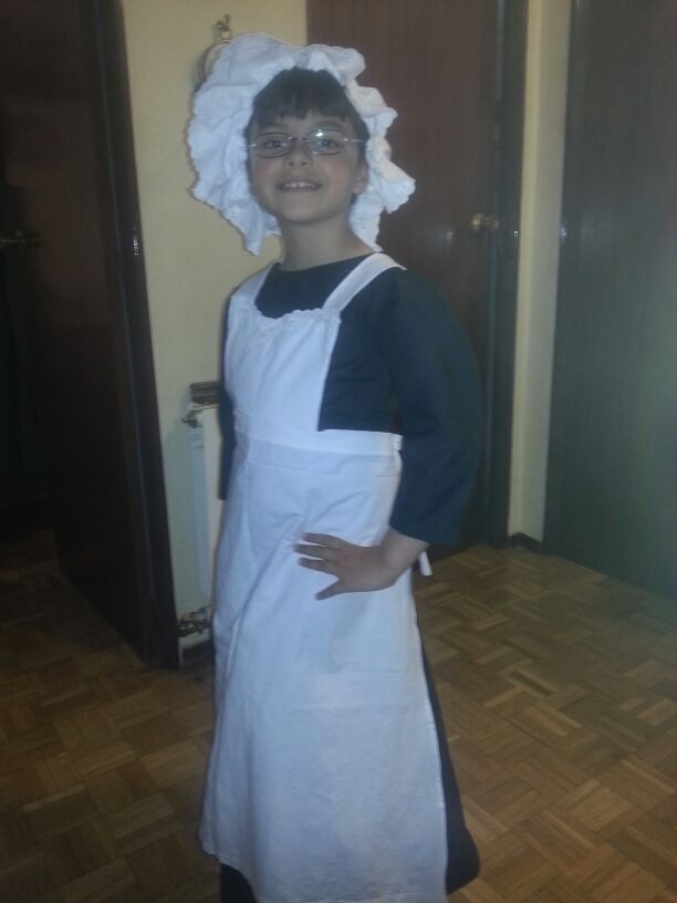 Os presento algunas fotos de lo que he ido haciendo, un uniforme de Ama de Cría, para la zarzuela Agua, Azucarillos y Aguardiente; un cluth reciclando unos vaqueros viejos, flores y círculos para collares...... un poco de todo.