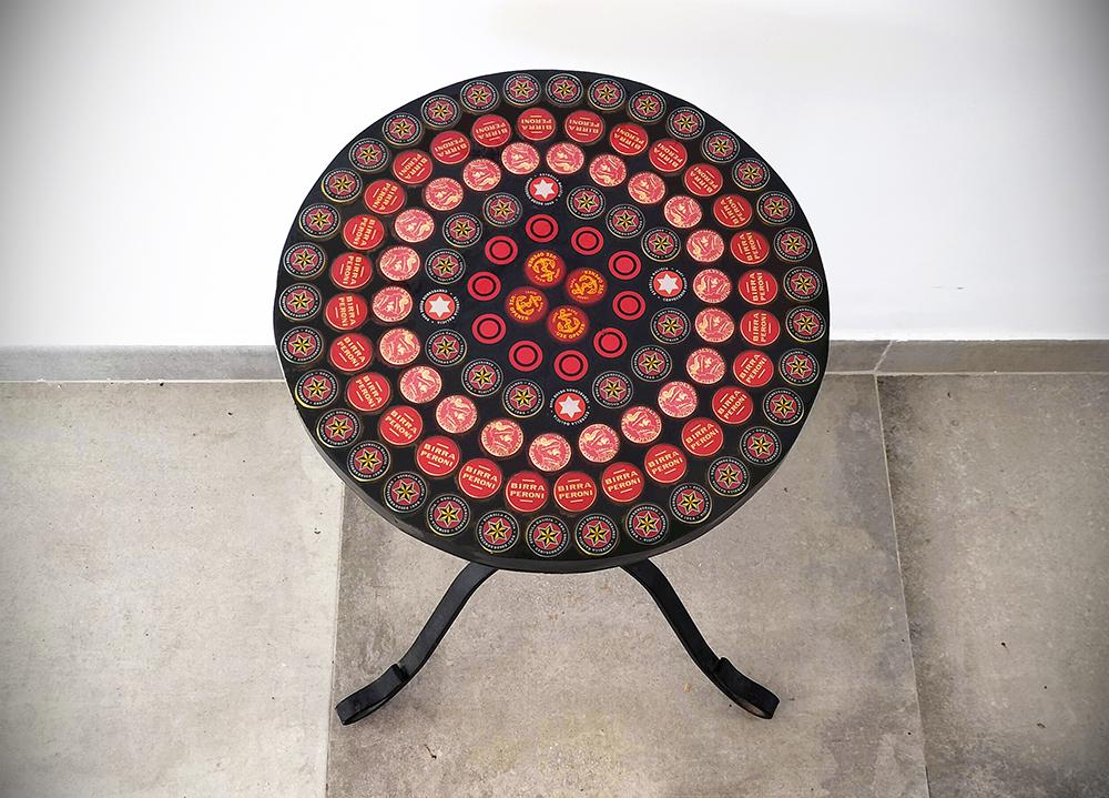 Una vez colocado el soporte así es como queda esta mesa con chapas de botella. ¿Qué te ha parecido ecomanitas? La verdad que estoy muy contento con este proyecto, me parece un reciclaje muy original y con un acabado increíble. Seguro que llama la atención en cualquier rincón de la casa donde la pongas.