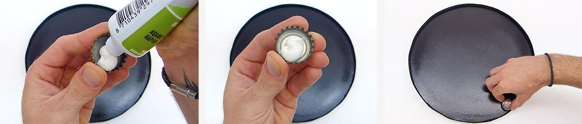 Solo tenemos que poner un poco del producto en el interior de cada chapa y situarla en su posición.