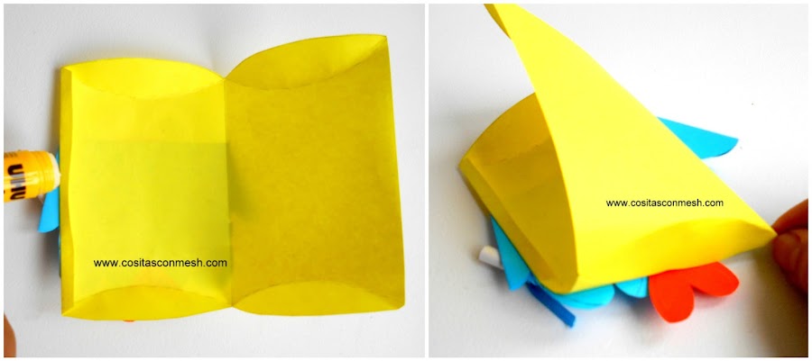 4.-Terminamos pegando las alas, las cuales las doble por la mitad.