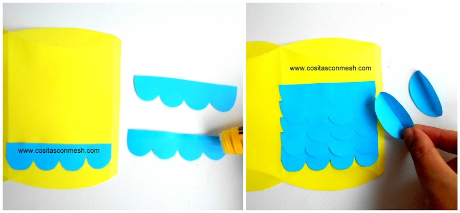 3.-Pegamos el plumaje del búho, uso pegamento en barra para hacerlo.