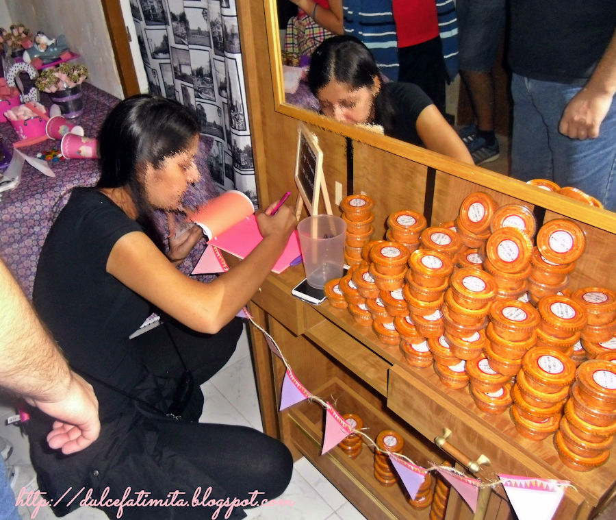Y no termina aquí la cosa. En otra parte, puse un libro de firmas hecho por mí, para que la gente les dejara sus buenos deseos.