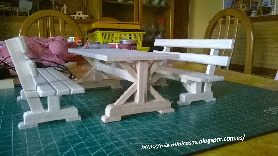 Aqui en un dia de invierno, sin saber que hacer con la enana pintamos las sillas y la mesa del ikea
