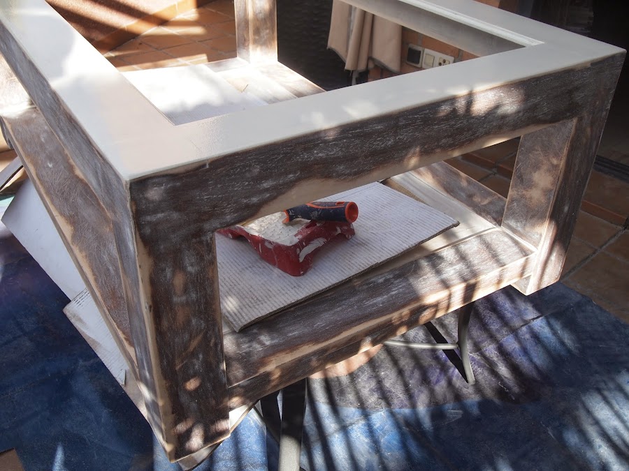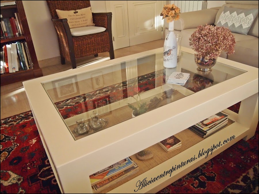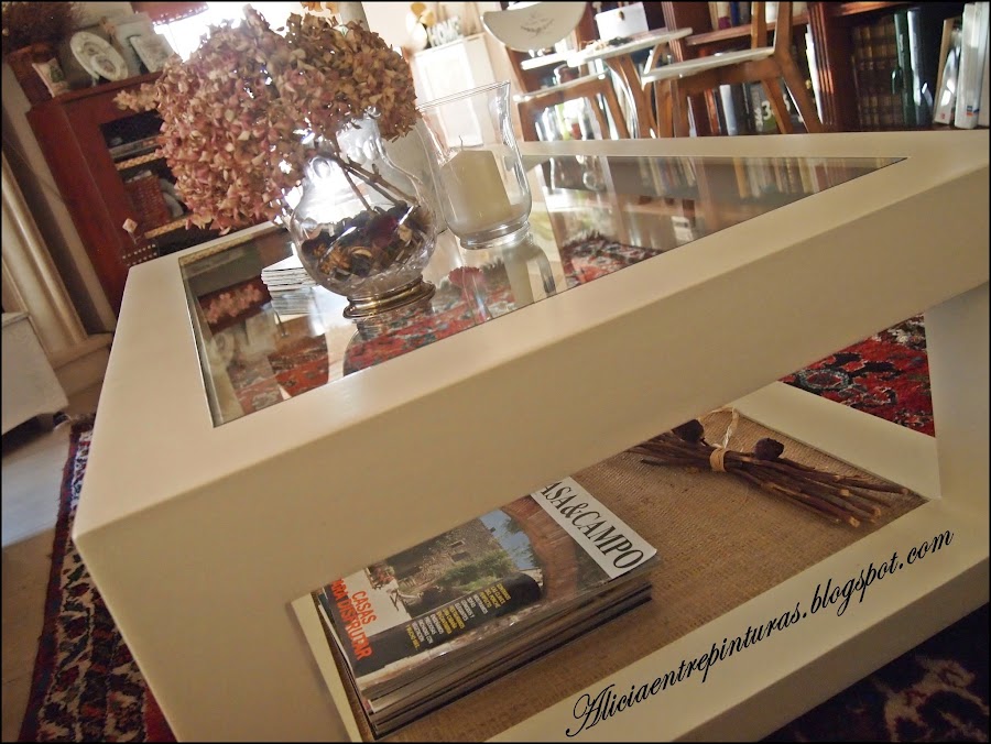Como se ve en la foto el tono de la mesa es un blanco roto, me lo sacó un pintor profesional cuando pinté la casa y aprovechando que compre una cómoda para el salón, que luego os enseñaré, y que tiene ese tono, pues decidí que la pintaría así con el fin de armonizar un poco.
