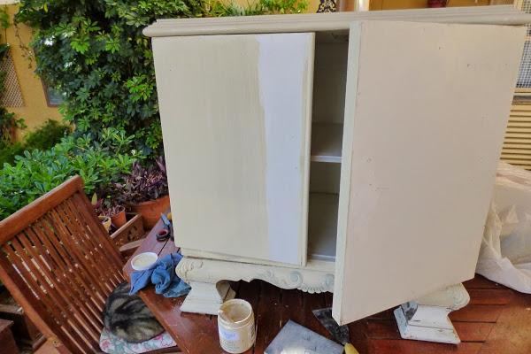 Como iba a hacer juego con el espejo redondo la he pintado del mismo tono Timeless con las pinturas de acabado tiza