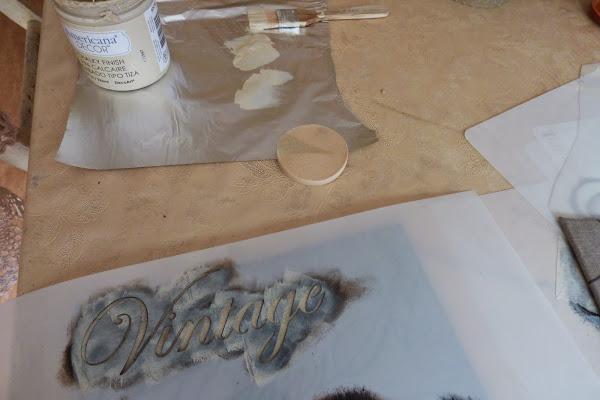 Quería sacar un tono parecido al de la tela para hacer los estarcidos....he mezclado un marrón siena, con marrón chocolate y una pizca de negro