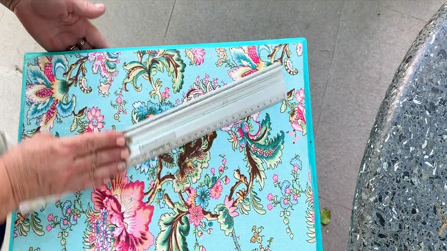 Coloco debajo de ella un plástico protector para la mesa y por encima de este la tela
