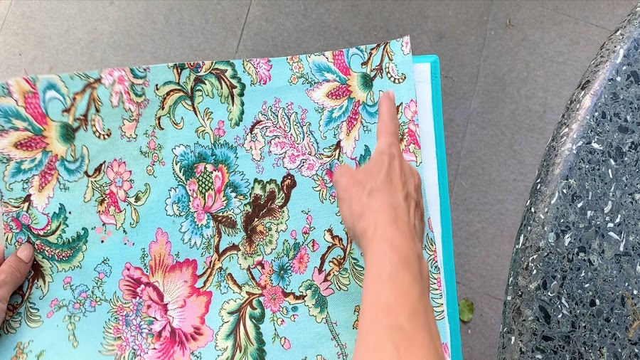 Despliego la tela para que los motivos principales o los que yo decida me queden en el centro del rectángulo