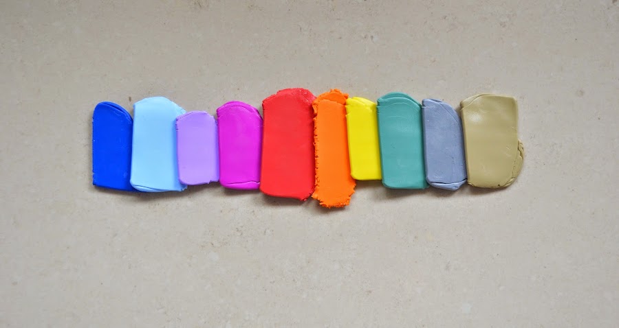 Pues bien, como hace tiempo que no hacía esas mezclas de colores y la verdad es que las echaba de menos, he decidido crear mi paleta de colores para la Primavera - Verano 2014 en arcilla polimérica:
