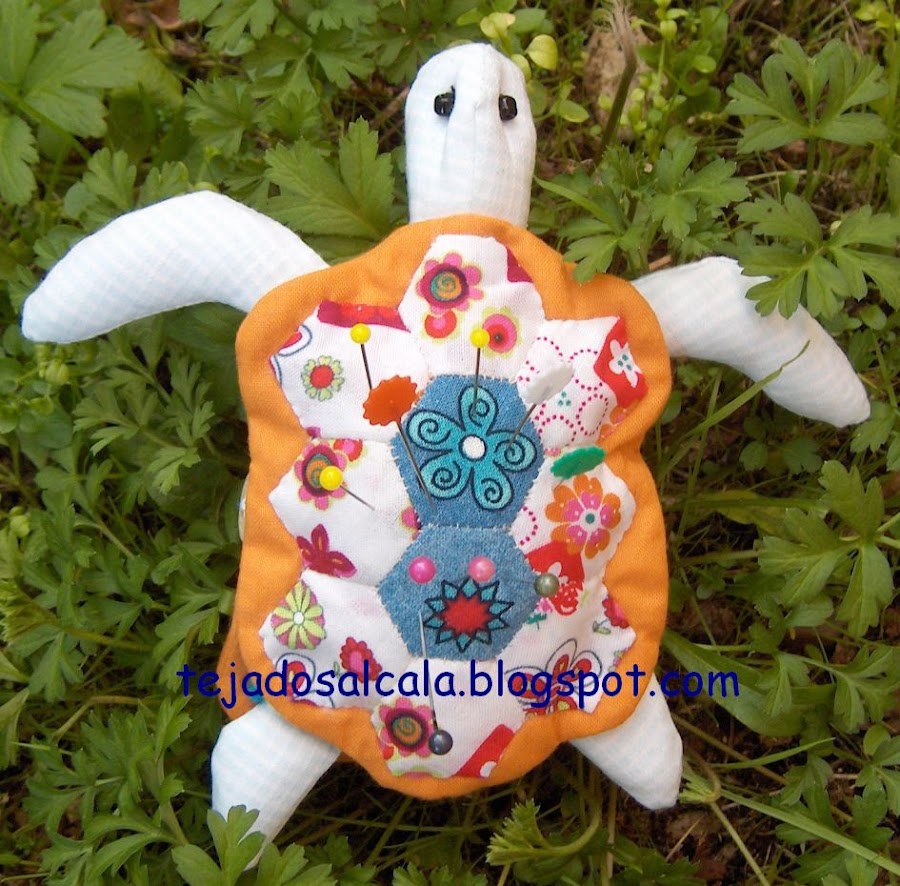 Es una tortuga, que al abrir el caparazon se hace un libro de agujas. Aqui la tengo dando un paseito por el jardin.