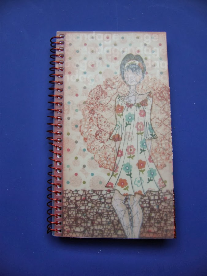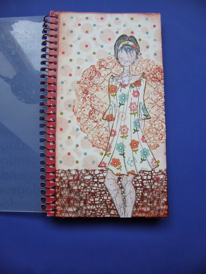 Como todos años compre mi agenda para el bolso, una sencillita que lleva mucho trote..... La diferencia es que este año la he alterado, de una forma sencilla ya que es para mucho uso. Al final use varias técnicas y mi sello de Mixed Media Doll que tenia por usar. Tiene una cubierta de acetato lo que va ayudar a proteger la agenda.