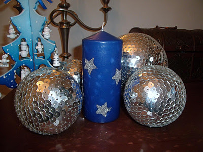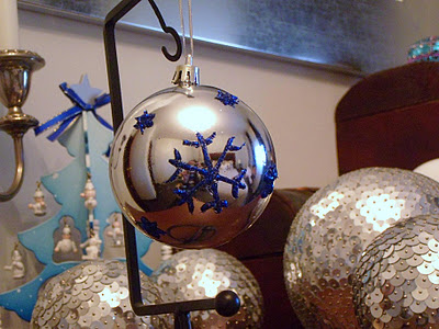 Algo tan sencillo como mezclar cola y purpurina y pintar las bolas como mas os gusten.