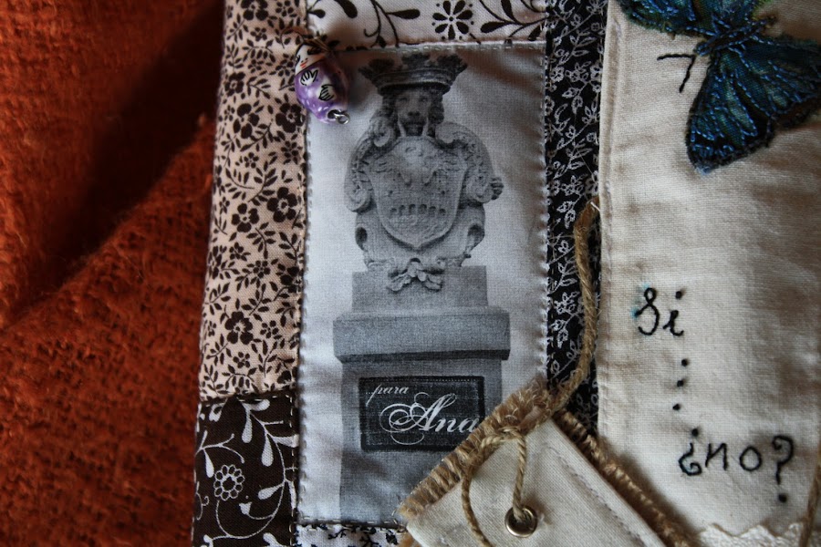 Ella, como sabéis, es una experta en esto del decoupage, el scrap digital, el bricolaje, todo lo que tenga que ver con ........pegar, cortar, usar maquinitas, todo lo que sea hablar de tú a tú con un ordenador.........osea, para que nos entendáis, somos el ying y el yang...........vale, lo único que tenía claro desde el principio era que haría algo en costura que es donde me manejo medianamente (solo medianamete) bien.
