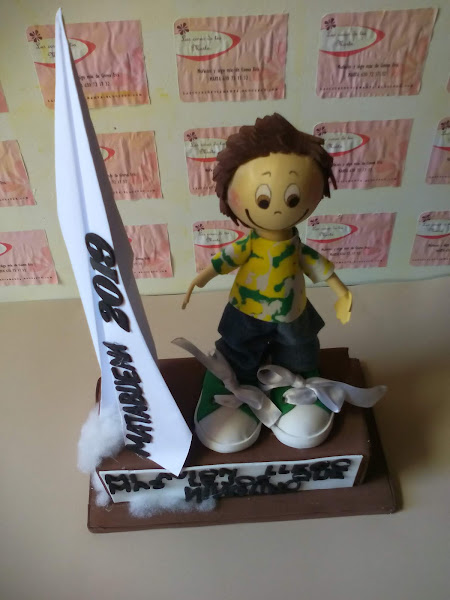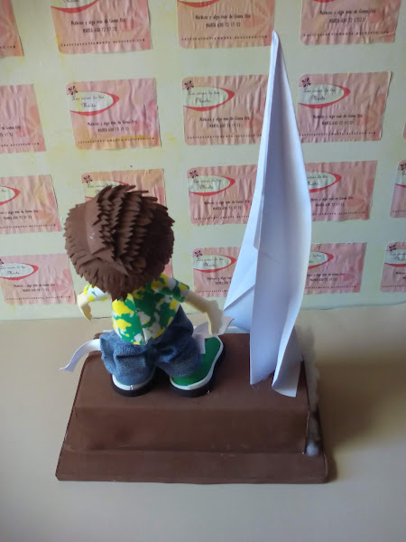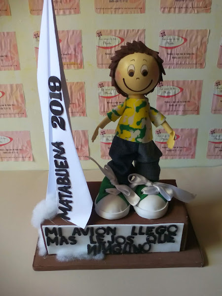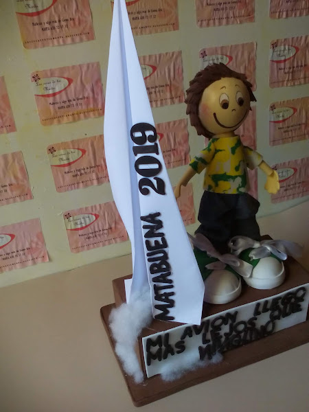 En esta ocasión me he decidido por poner al fofucho depie junto al avión de papel con el que ha volado los campos de este municipio segoviano.