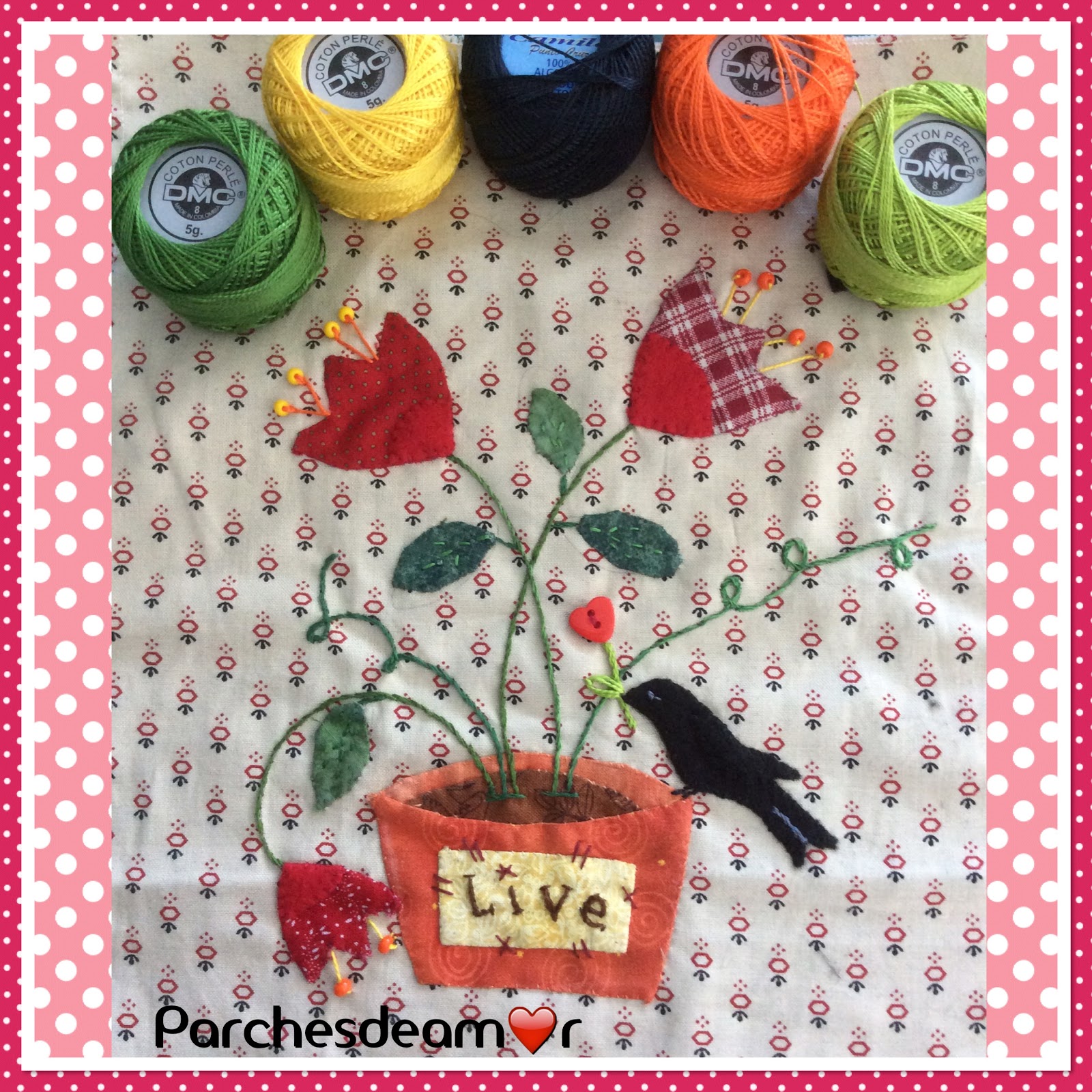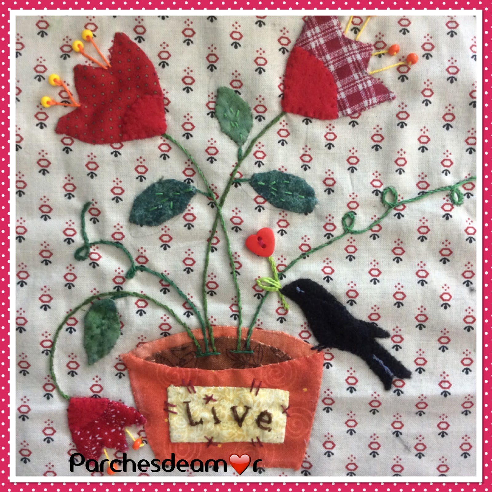 En este bloque he empleado fieltro en el centro de las flores y en el pájaro.