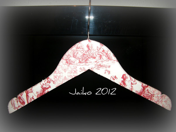 Para colgarlo del tendedero compré una percha blanca pequeñita y la he decorado con decoupage, con una servilleta completamente a juego, en tdj. Parece que estan hechas la tela para la servi y viceversa.
