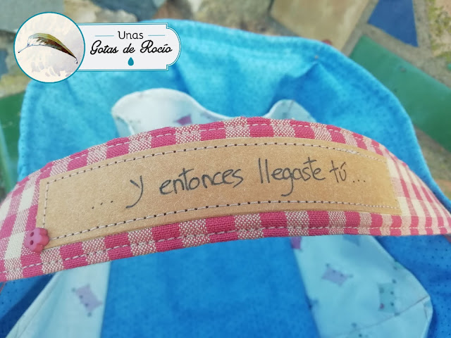 Para la base he usado kraft tex, lo tenía guardado de un regalo de cumpleaños y no me atrevía a usarlo, pero vi en esta labor la ocasión perfecta. Colocado en la base del bolso y siendo un material resistente al agua, pienso que me será especialmente útil cuando repose el bolso en la hierba o una mesa húmeda. Ha sido especialmente incómodo de coser. A ver si logro explicarme. Puesto que no es un material flexible y además si lo doblas o arrugas los pliegues no desaparecen, es complicado coser costuras que luego tengas que girar. No obstante, se cose estupendamente en pequeños detalles como el que he puesto en el asa. Y es que para esta utilidad me ha encantado: se escribe perfectamente sobre su superficie, se cose divinamente y el aspecto final es espectacular.
