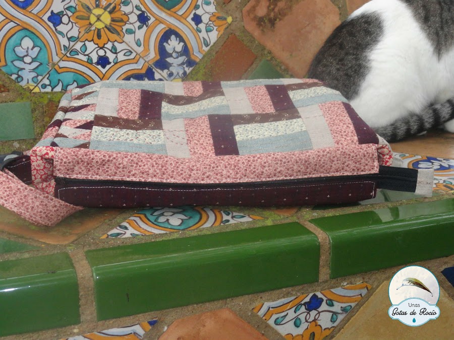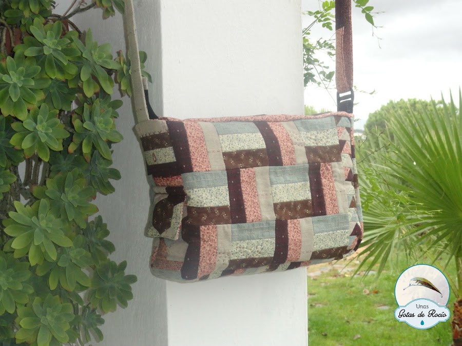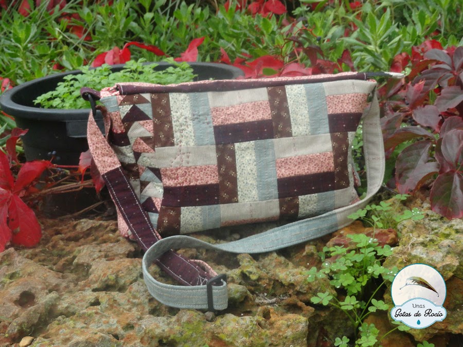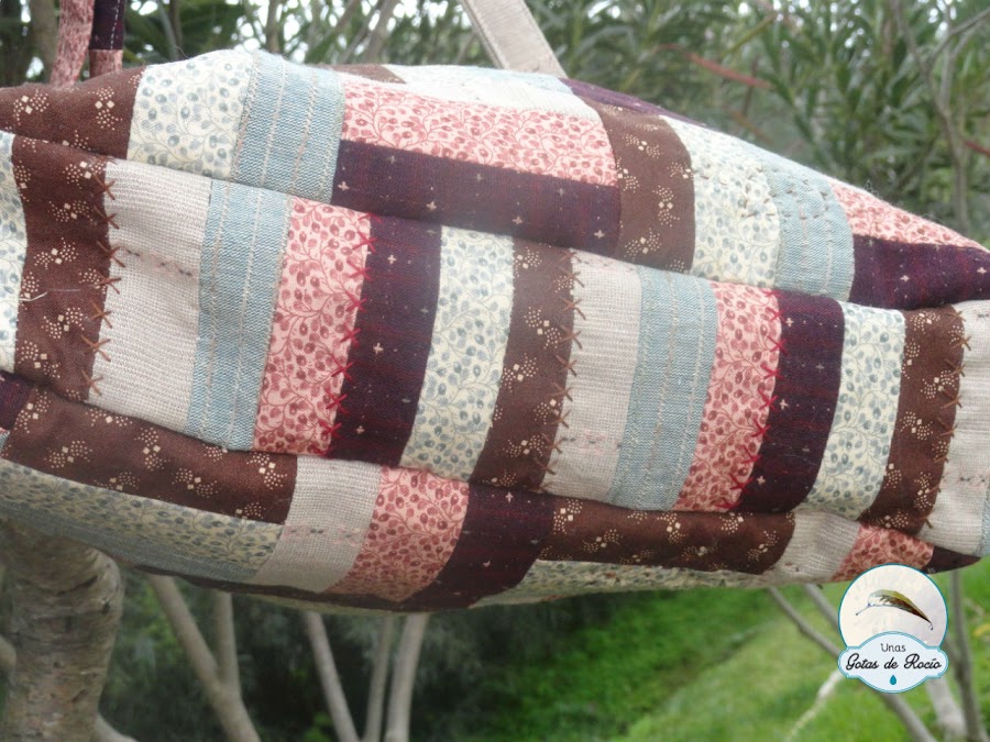 Para el lateral y el bajo del bolso aproveché los pequeños trocitos que me sobraron de las tiras que corté para la vía del tren, los uní y los acolché con cruces.