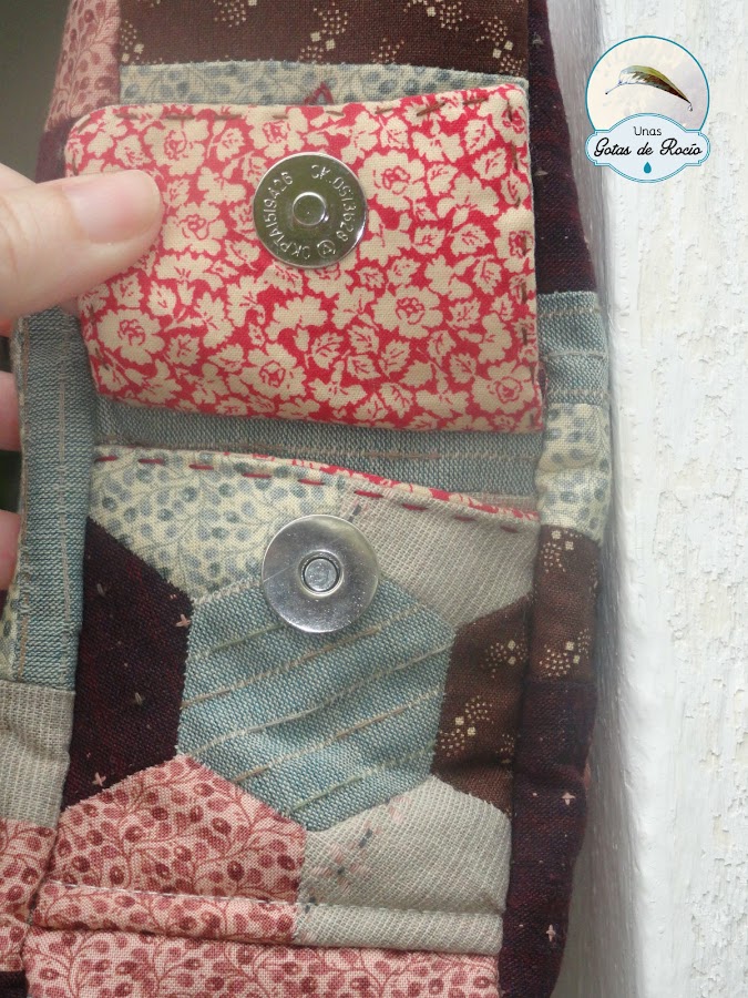 En uno de los laterales he colocado un bolsillito imprescindible para mí, ya que es el bolsillo de las llaves. Al estar por fuera las localizo rápidamente, sin tenerme que parar delante del coche a abrir el bolso y sumergirme en él a la caza y captura de las llaves.