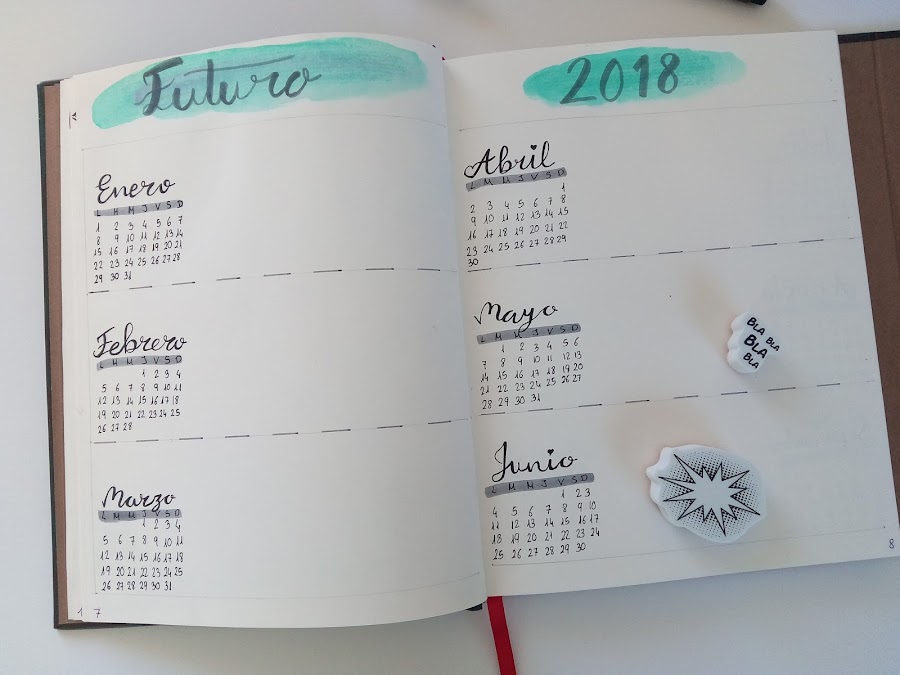 Empezamos con eso que llaman Futuro log, registro futuro, es un calendario del todo el año para tener donde apuntar eventos o cosas importantes durante el año, si no tienes creado el mes de marzo por ejemplo, pues lo registraría aquí.