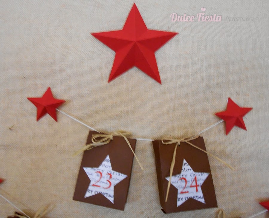 Paso 4 Hacemos las estrellas 3 D y las pegamos en el Calendario de Adviento