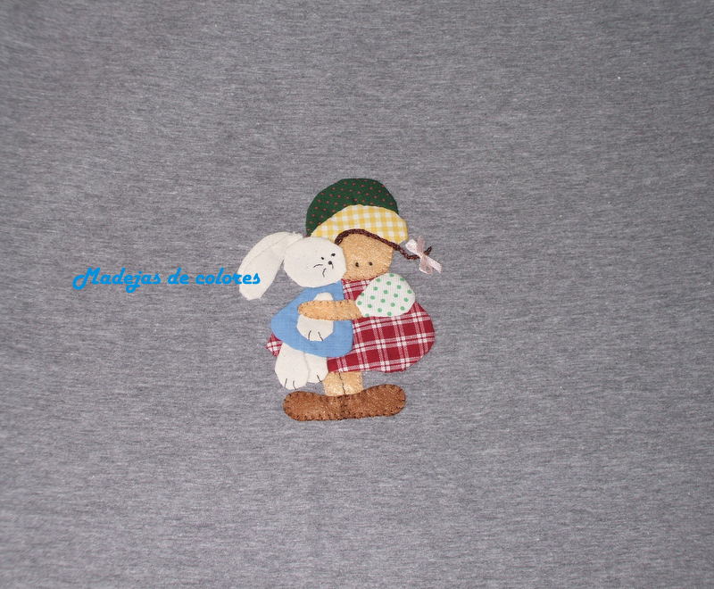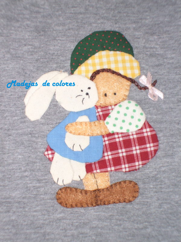 Como detalle el pelo a punto cadeneta y un lacito en al final de la coleta. A festón la cara, piernas y zapatos, que son en fieltro.