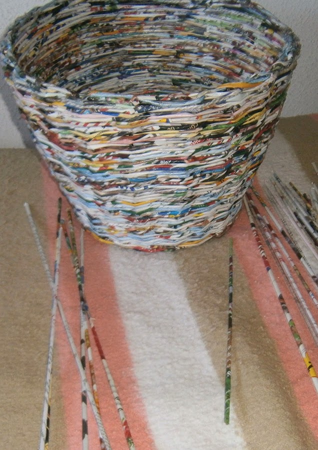 y a tejer, para la base empecé haciendo un círculo del tamaño que quería, en la foto se ve el círculo de la tapa pero se trabaja igual, como molde utilicé lógicamente mi antigüa canasta.