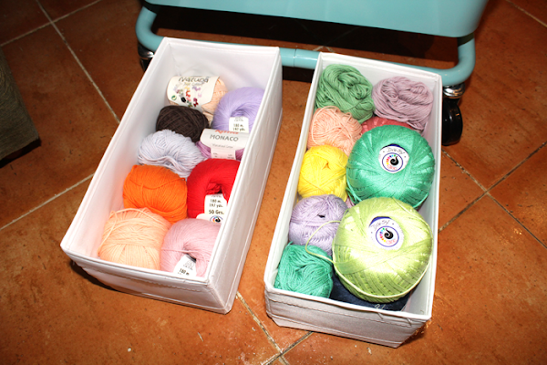 Por ahora, esta organización me está funcionando genial, ya no tengo que subir escaleras cada dos por tres, ni tengo el salón lleno de ovillos sueltos por todos lados.