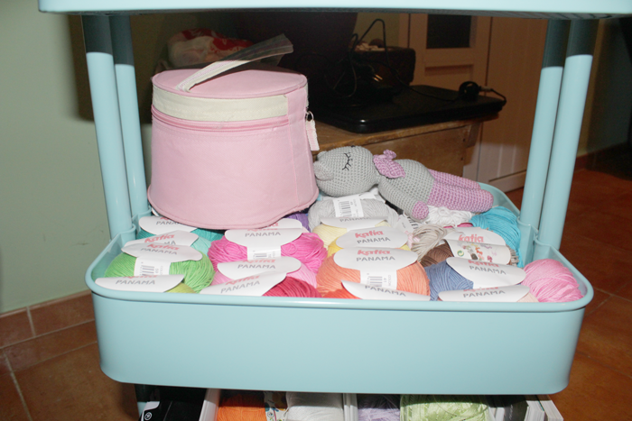 Unos meses después, cuando ya empecé a acumular más y más materiales para amigurumis, no encontraba el sitio perfecto para almacenarlo todo junto y tenerlo a mano.