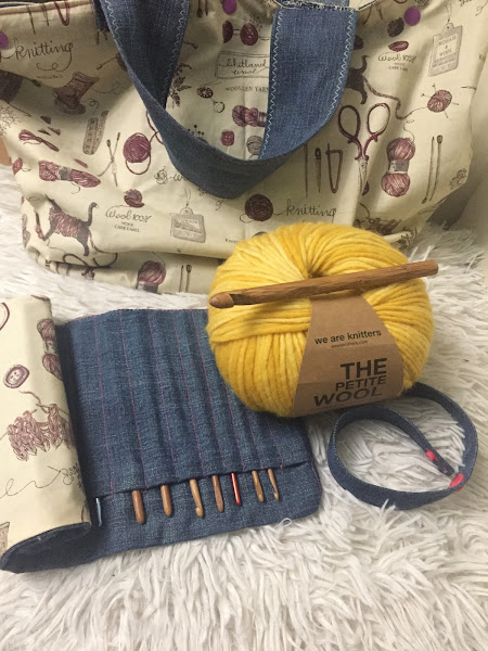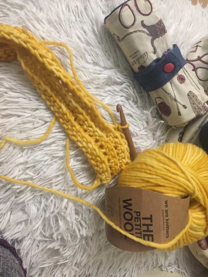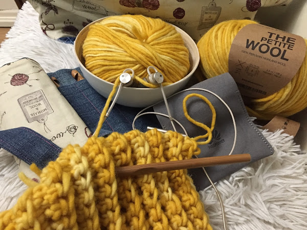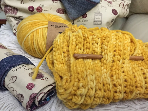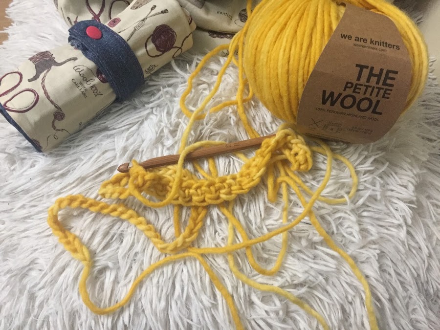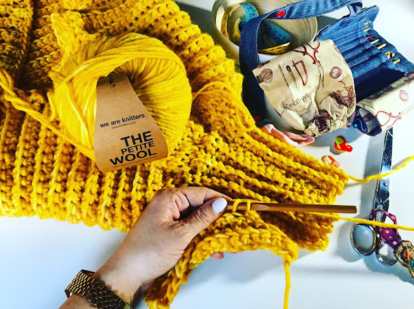 - 5 ovillos de lana amarilla jaspeada de we are knitters. Pero tenéis mil colores preciosos para elegir.