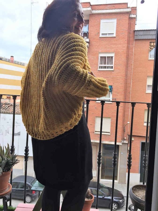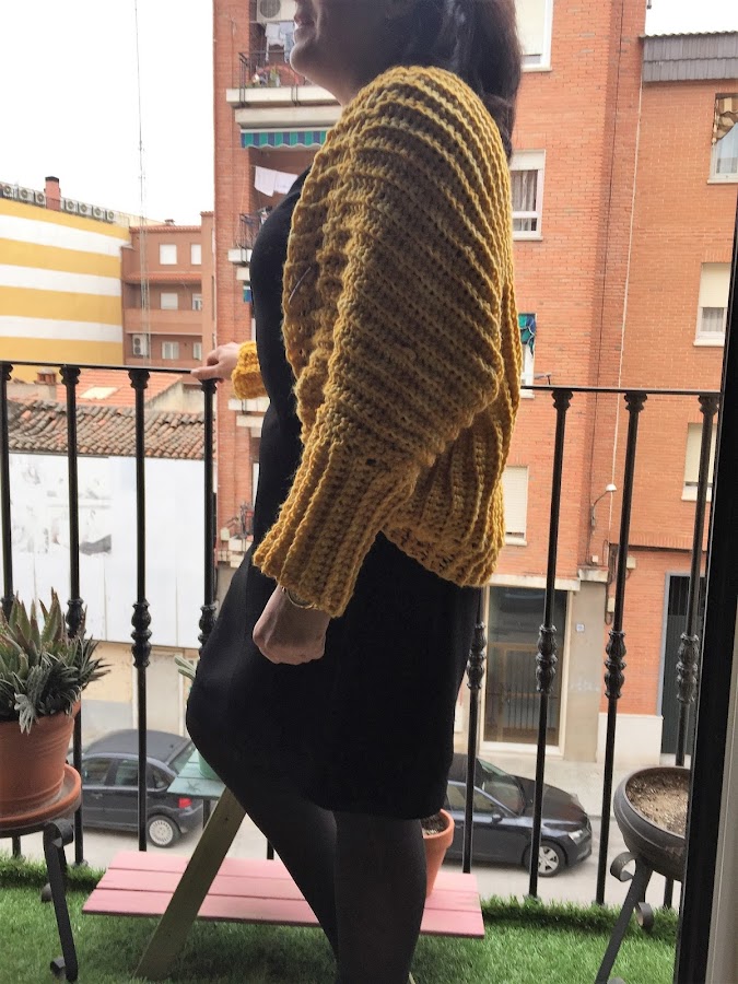 Yo he dado una vuelta más a la parte superior de la chaqueta, a la mitad superior y este es el resultado de la chaqueta.