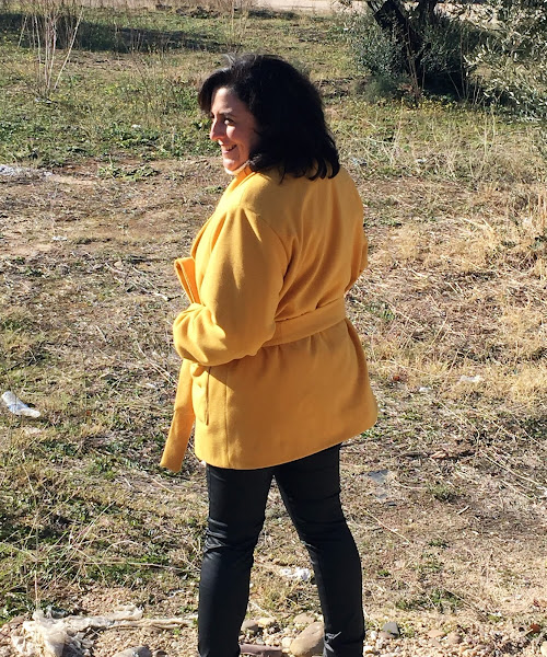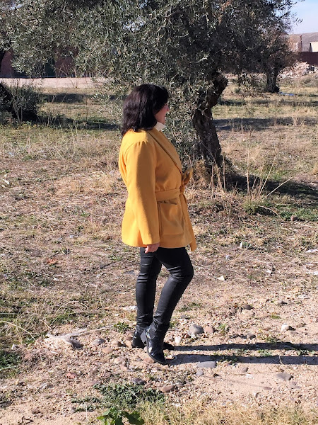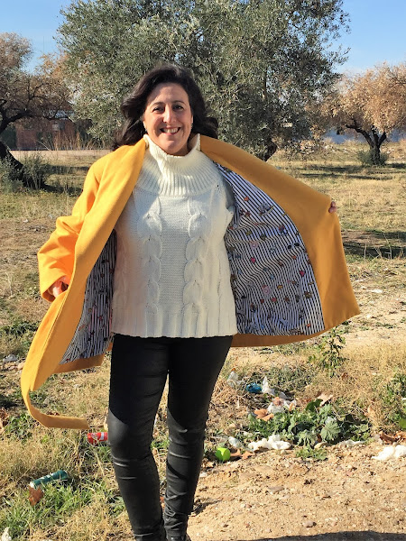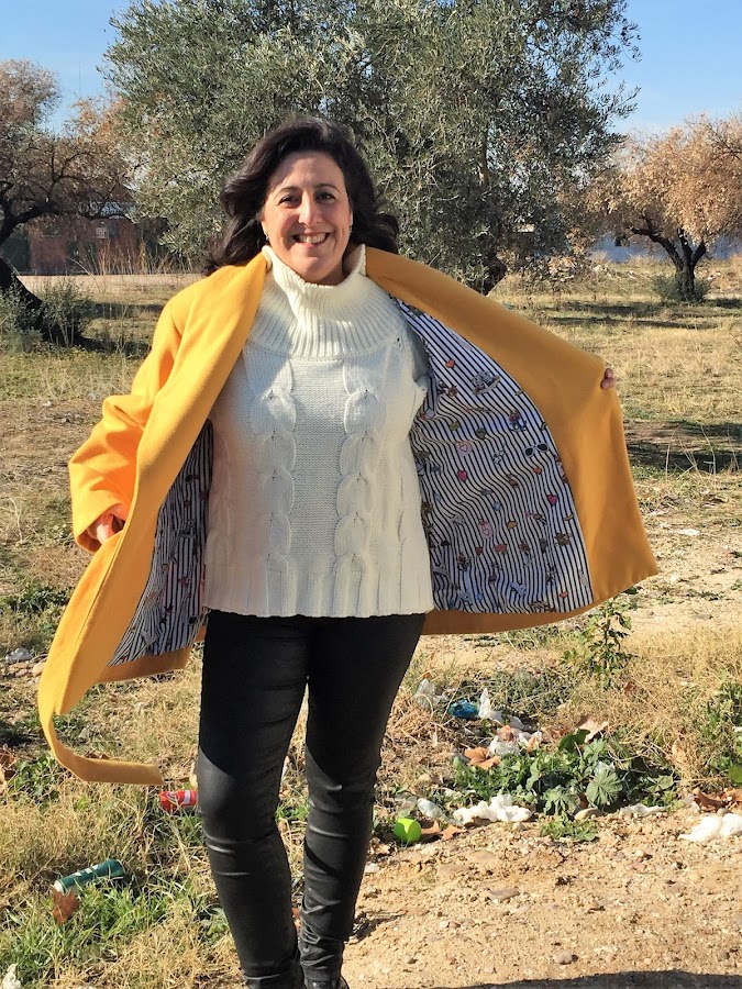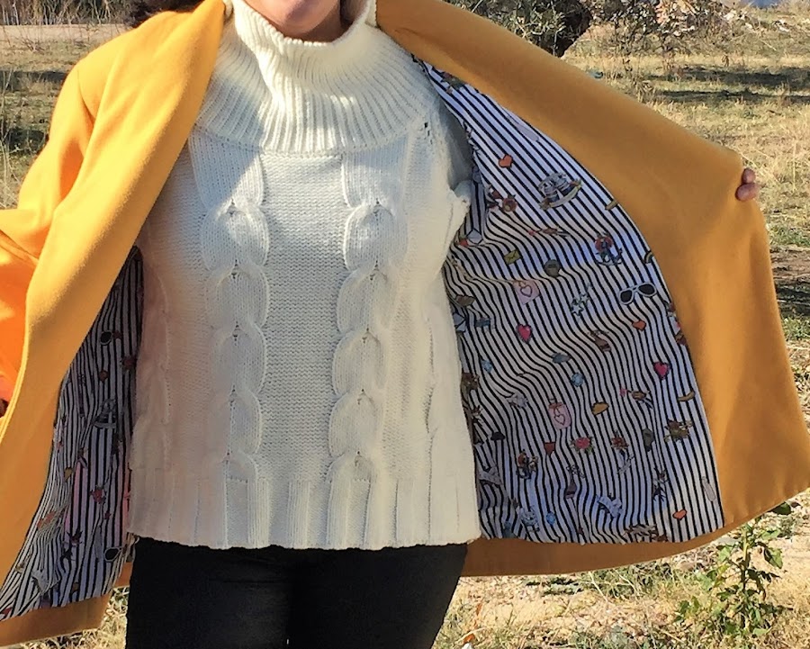 Este año quería hacer un chaquetón en color mostaza o amarillo, cuando encontré la tela que quería, no dude en hacerme con ella y ponerme a coser mi chaquetón rápidamente y la verdad es que estoy encantada con el resultado, no me lo quitó, desde el día que lo termine, me lo pongo todos los días.