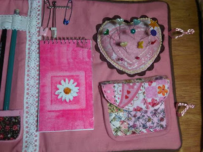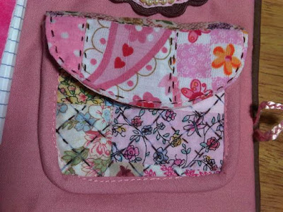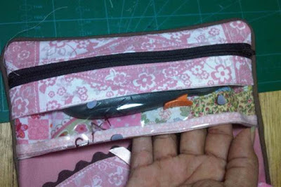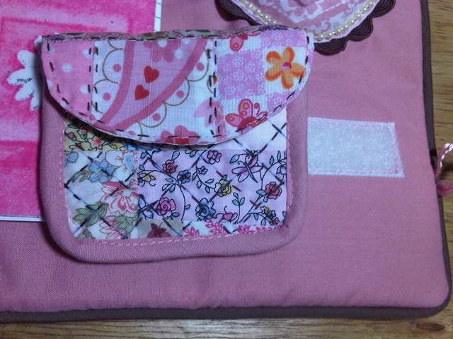 Cada quien le dio su toque personal y usó los colores de su preferencia. En mi caso combiné rosa vieja con marrón. Este es un bolsillo doble con cierre...