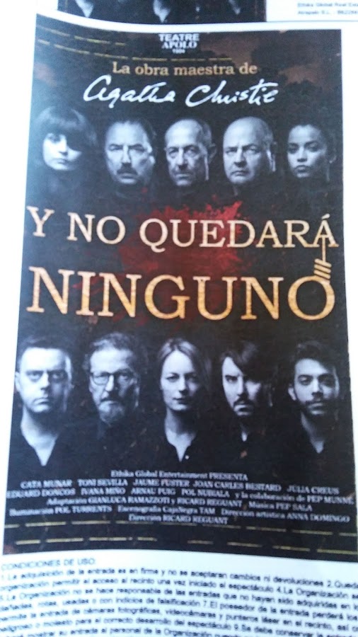 Empezamos por la primera, la sorpresa me la prepararon en casa mis niños, los regalitos de mi trastico han sido cositas molonas que ha comprado y pensado ellaaaa... Ari sabe que me gusta escribir y además ultimamente me ha dado por hacer repostería, así que me ha regalado una libreta para anotar las recetas que es superchula, una tarjetita de Caterina dedicada (mira que eres mala trasto) y como sabe que me gustan los bolis, pues un boli muy original, un esqueleto al que se le encienden los ojos y mueve los bracitos como boxeando y Jor me dio otro gustazo... me regaló entradas para ir al teatro a ver la obra "Y no quedará Ninguno" de la novela de Agatha Christie "los Diez Negritos", estuvo genial, muy buenos actores y hubo risas y misterio, las dos horas se nos pasaron volando... sólo comentaros que el mal@ no es quién os pensaís, no puedo decir nada más!!