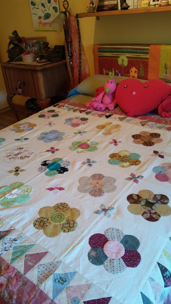 Pero aquí no acaba la cosas, en casa tenía otra surprise.... Una colchita hecha por mi mami, me encantaaaa ya la tengo puesta, es superbonita es que tiene unas manoooos... es un trabajo de chinos, qué santa paciencia tiene!! a qué es monísima!!