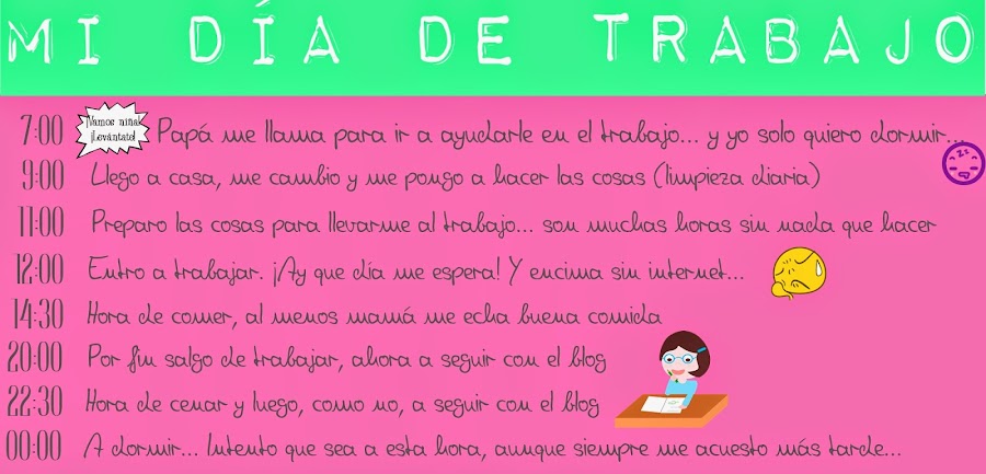 Aquí os dejo la imagen en la que he puesto mi horario un día de trabajo (un día sí y otro no), porque sí, este verano he conseguido trabajo en la piscina de mi pueblo.